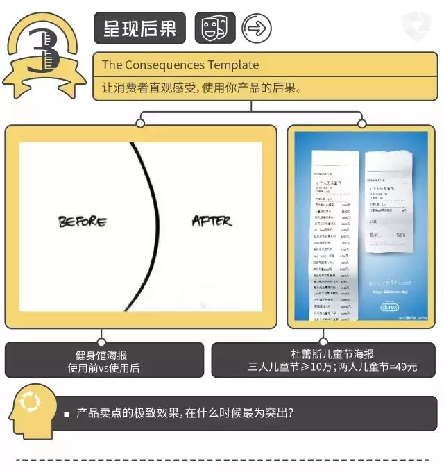 可以看到,无论是比较抽象的信息,或是大多数产品特征,还是品牌营销策划,都能透过这6大创意模板单独或组合完成,打开思路,让营销更具冲击力。