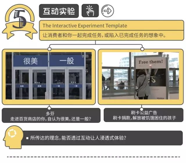 这6个创意模板分别是:1)形象化类比、2)极端情境、3)呈现后果、4)制造竞争、5)互动实验、6)改变维度。大家完全可以参考使用。