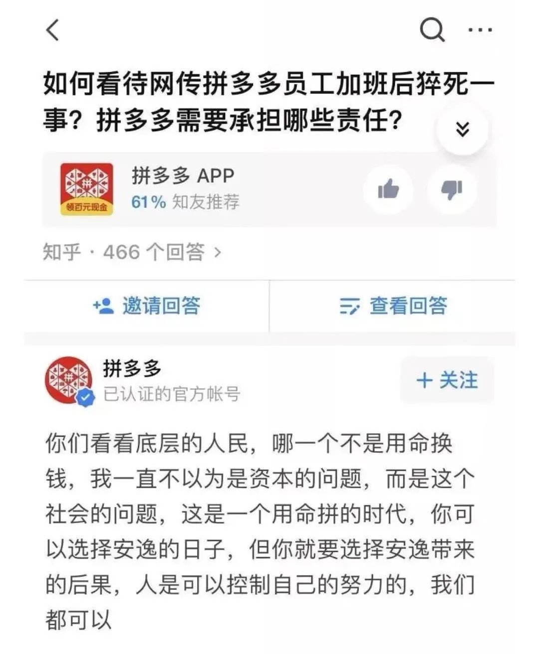 所有的偶然都是必然,不夸张的说,23岁员工猝死的事情,在拼多多甚至其他大厂绝不是偶然事件。如何从根本上、体制上去规避这样的事,这不是公关层面能解决的。