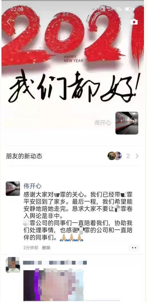 拼多多声明中的第二个问题,在于那张受害者家属的截图,从这张截图里能看到几个细节,朋友圈文字下方有个「删除」按钮,这说明截图来自于发布者,以及截图的时间是发布后2分钟,这意味着什么?懂的人自然懂。