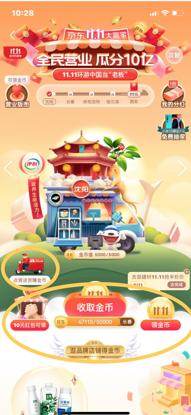 活动的页面增设有彩蛋时不时制造惊喜,比如:点击货架有惊喜哦,点我送货可以赚金币哟等;一是给奖励反馈方式增设彩蛋,让活动更有趣味性,让用户可以继续保持兴趣;