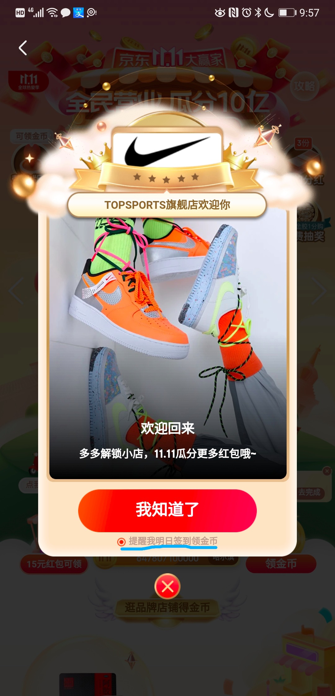 每天登陆时出现弹窗提醒领金币,以及任务中心的签到打卡提醒,都是反复提醒用户返回,提升用户留存,关注活动本身。
