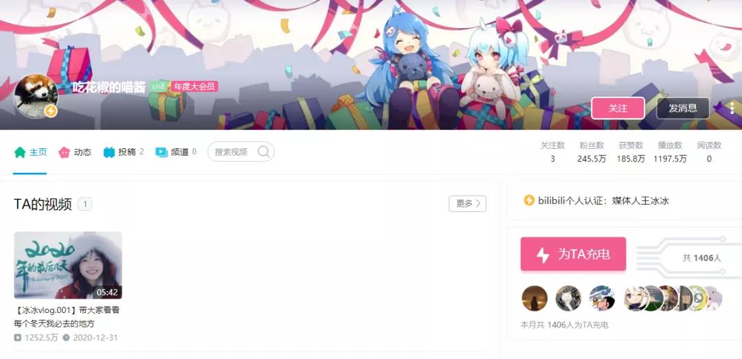 我啪地一下就找到冰冰,上来就是关注,然后一键三连。
