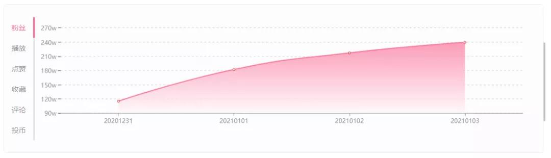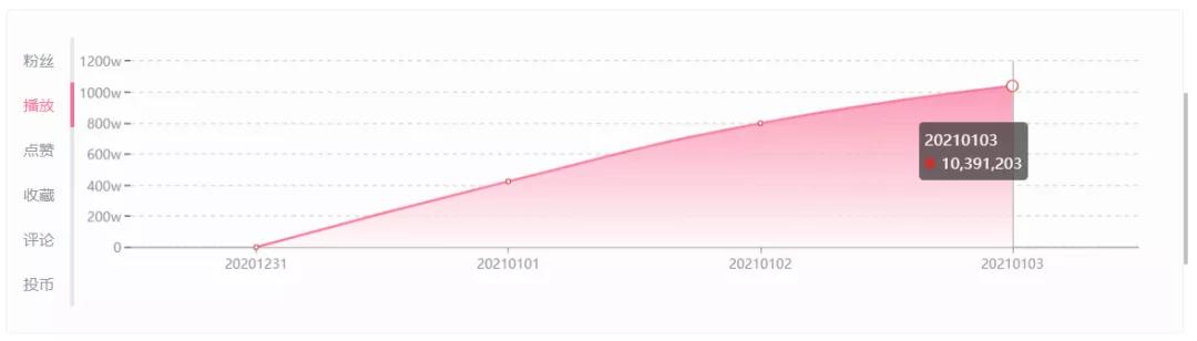 可以看出,B站的热度环境下当她第一个视频发出来,必然会出现这个爆款现象。我们再来看她12月31日中午发布的这个视频数据情况。