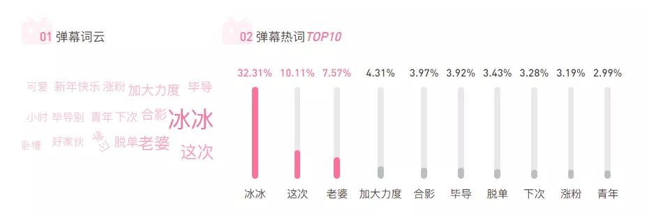 从用户的互动行为到用户的舆论来看以下两组数据:评论热词和弹幕热词。不难发现深刻的反应了b站年(l)轻(s)人(p)的力量