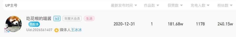 万众瞩目,王冰冰第一个视频在2020年的最后一天终于发了出来,王冰冰以“吃花椒的喵酱”为ID入驻B站,分享了一条五分多钟的vlog,带大家看了每年冬天的工作地点和并介绍了工作内容和目的。