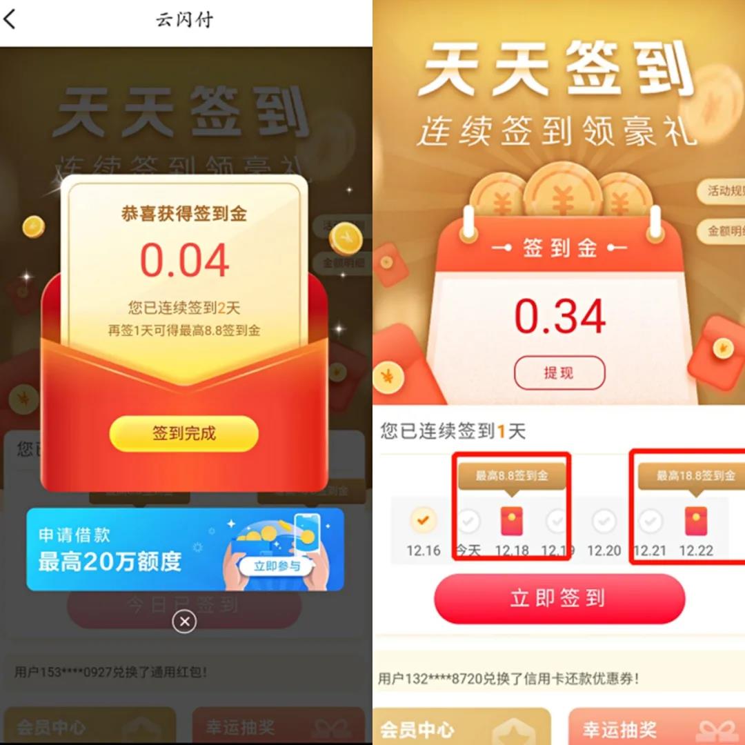 活动页面中提示签到的第3天和第7天能领取较高的金额,我之前在签到第3天时,实际领取到的金额依然不多。