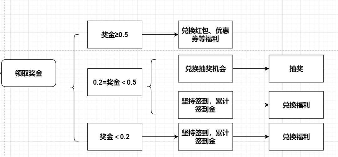 这是我参加过最麻烦的兑换活动,每日的签到金不多,甚至很难让你去进行1次奖品的兑换。想要兑换奖品,还要第二天继续签到,领取签到金,很可能第二天的签到金也并不多。如果当天签到金是0.18元,离抽奖(兑换金额是0.2元)兑换只差一点点,也没有任何方式或者通过做任务来获得签到金,非常尴尬。