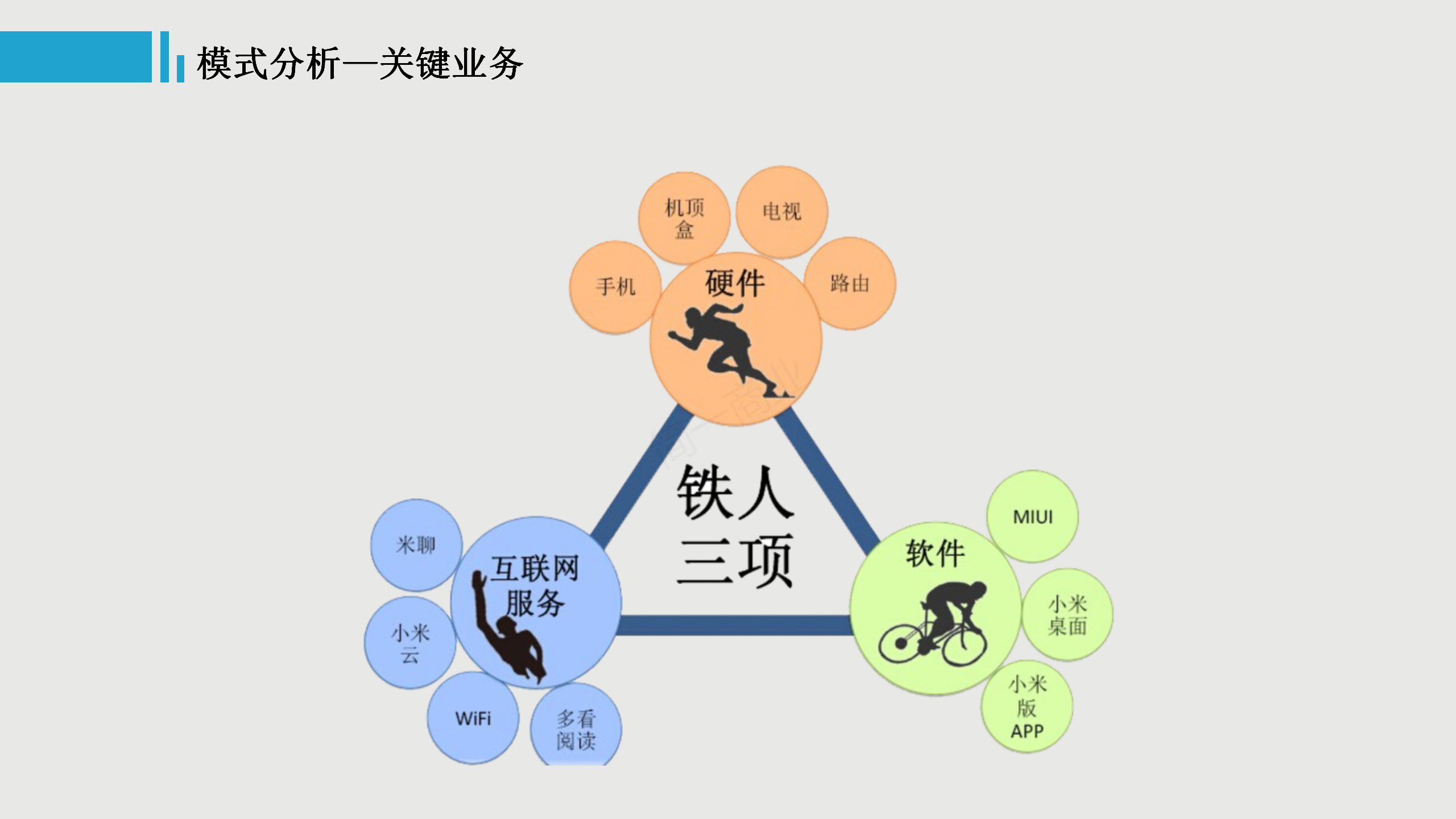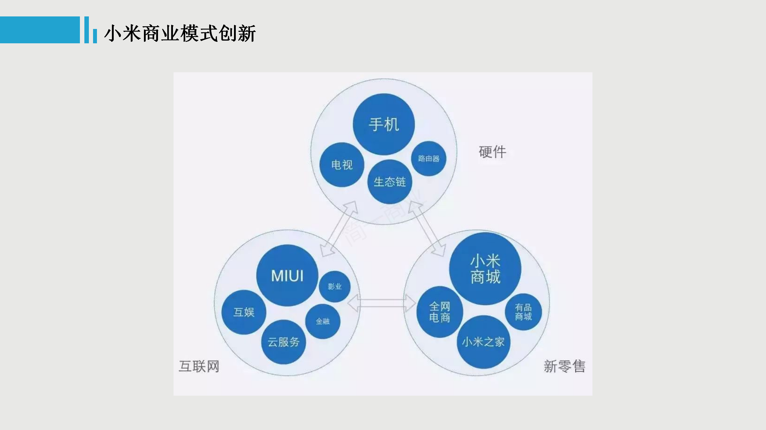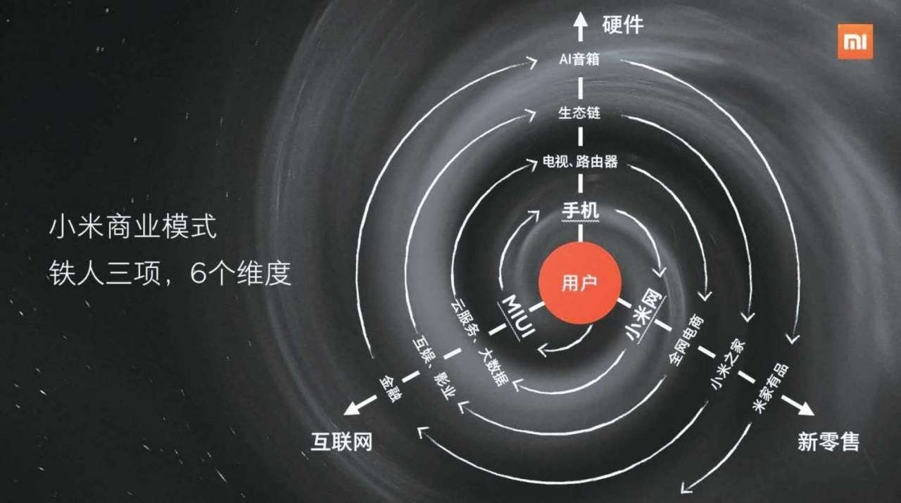 小米把自己的商业模式定义为“铁人三项”,即硬件+新零售+互联网。