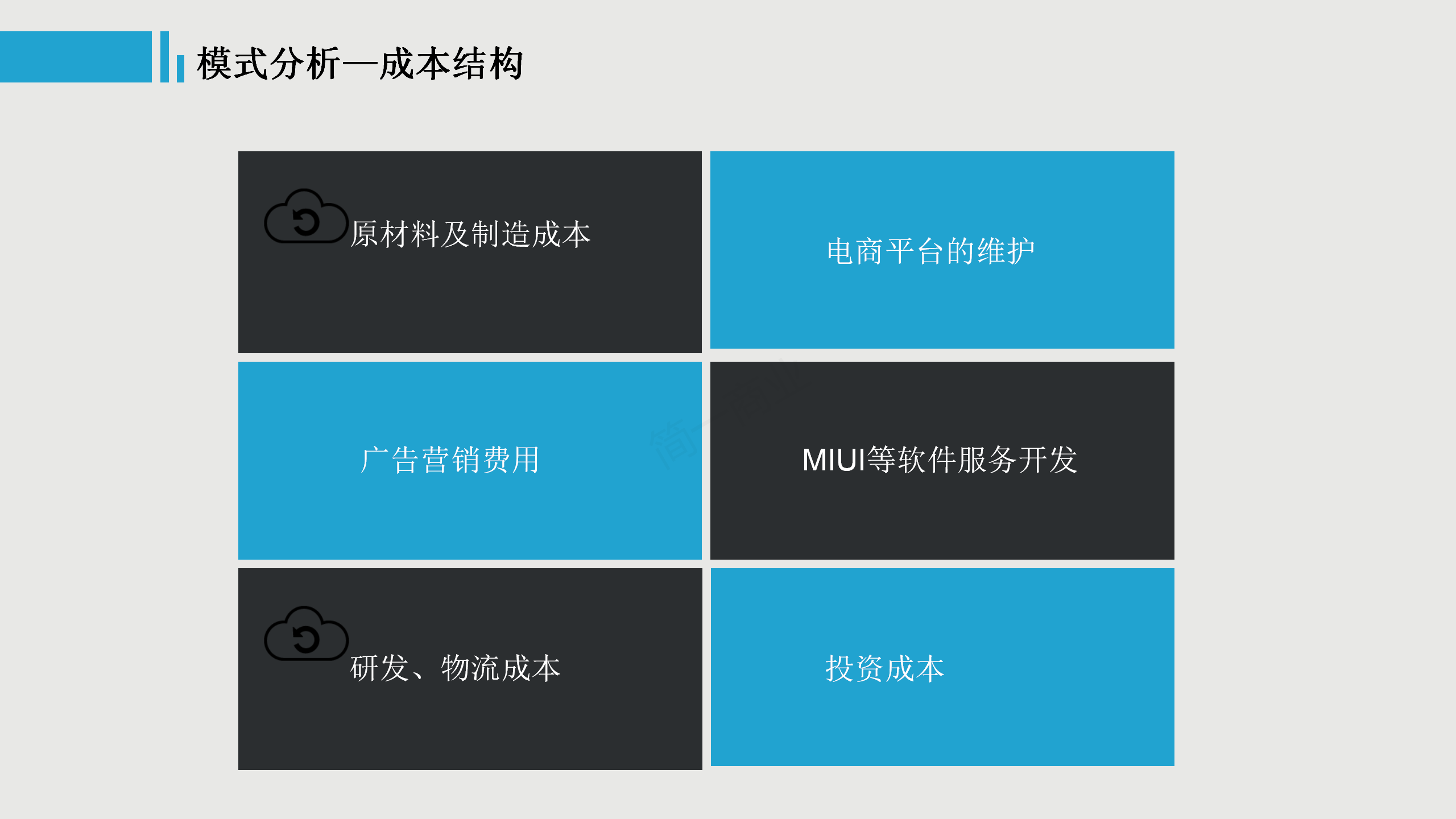 硬件不赚钱,靠服务和增值赚钱,砍掉传统的线下渠道,靠电商直销渠道,以社交媒体为核心“口碑为王”。