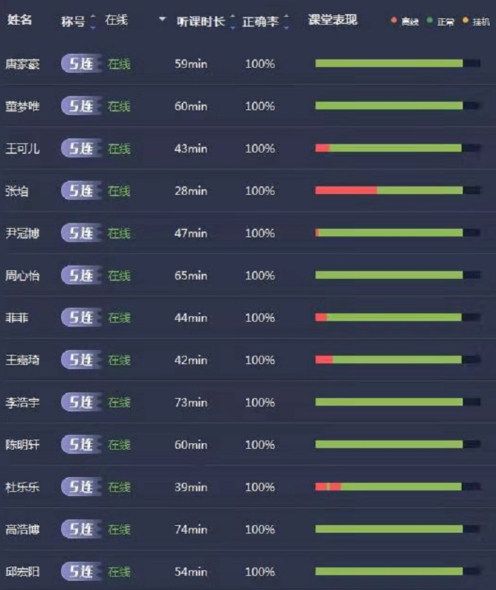 1)学而思的助教老师在完课后,会在群里公布孩子们的听课情况,上面清晰地展现孩子们的听课时长,是否缺课一目了然,看到别家孩子都完成了,而自家孩子一路飘红,家长心里就会有亏损感。