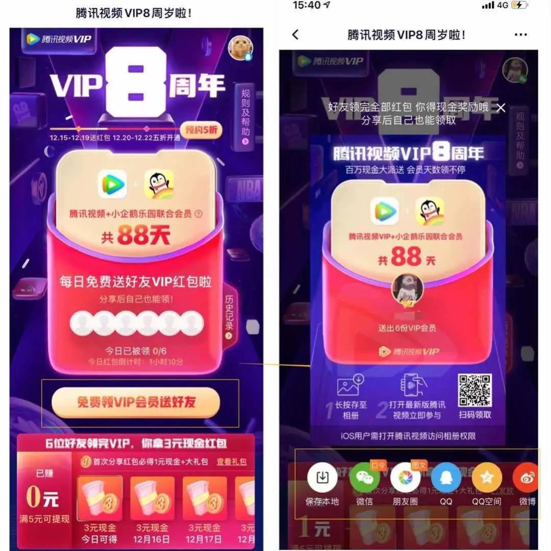 本人是在充值VIP后出现活动弹窗才发现腾讯有这样的活动。所以造成这种区别的原因大概是手机的功能偏社交,更适合活动的传播和分享裂变的进行。