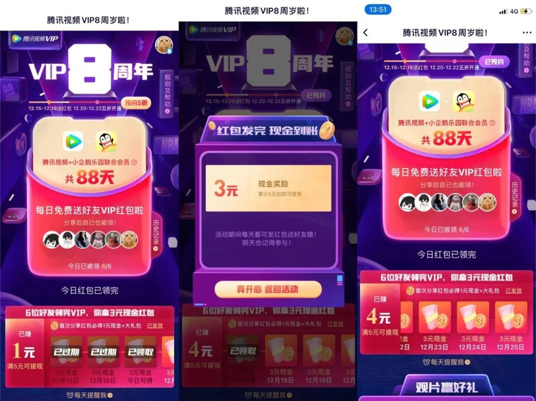 案例名称:【腾讯视频】 VIP8周年免费领会员活动