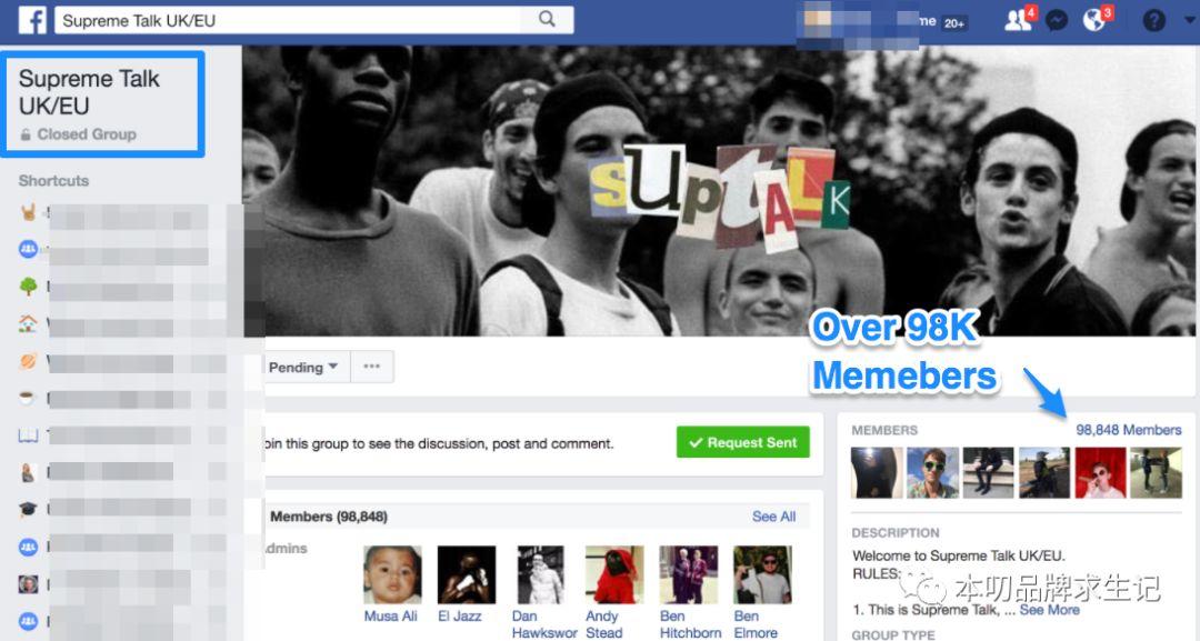 Supreme Talk UK/EU(也叫SupTalk)是欧洲最大的Supreme粉丝群,也是Supreme最大的二手转卖Facebook群组之一。