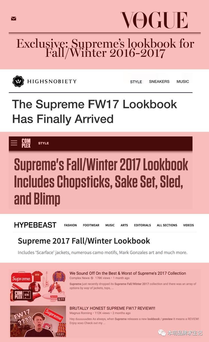 事实上,2016年,光Hypebeast就能产出113篇Supreme相关内容,分享数达到20万。这只是Supreme之外内容和品牌声量的一个例子罢了。