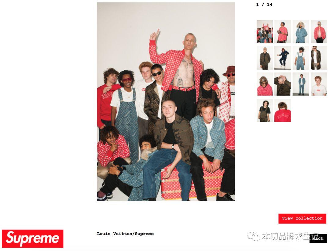 除了季节新品宣传,他们也和一些高端时尚或服饰品牌合作。下图是LV和Supreme联名系列产品: