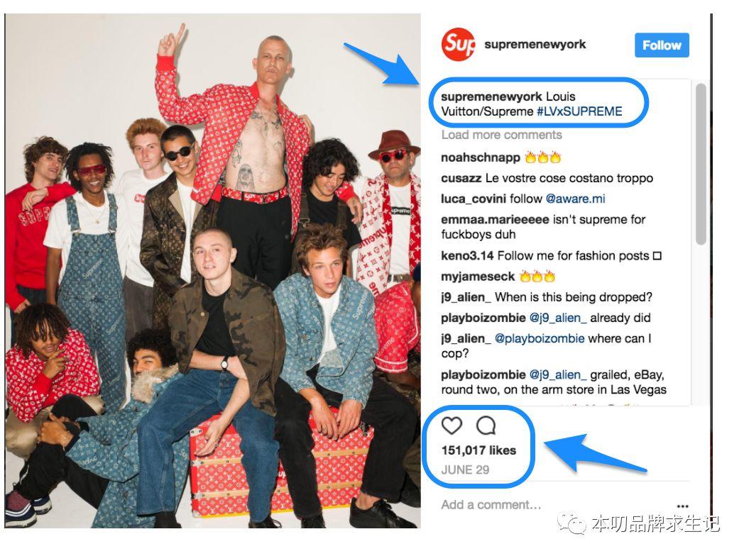 Supreme跟很多大牌都合作过,然后把都放到Instagram上推广,他们只聚焦这一个平台。一方面把这些品牌对千万粉丝作了推广,另一方面因此带来了更多合作和粉丝增长。