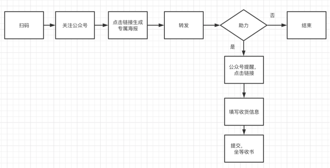 扫码海报图-关注公众号-获取专属海报-转发助力-助力成功点击链接-点击领取-填写地址-提交
