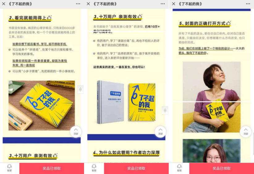 对于这本书的内容,从理由、适用、效果、封面趣味上这几方面全面的展示,提高奖品的清晰度,让用户更加有完成的任务的积极性。