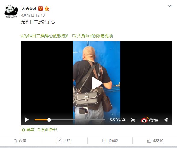 就致力于发布各种沙雕、搞笑类的视频和图片,最近发布的一条视频#为科目二操碎心的教练#还直接上了微博热搜。