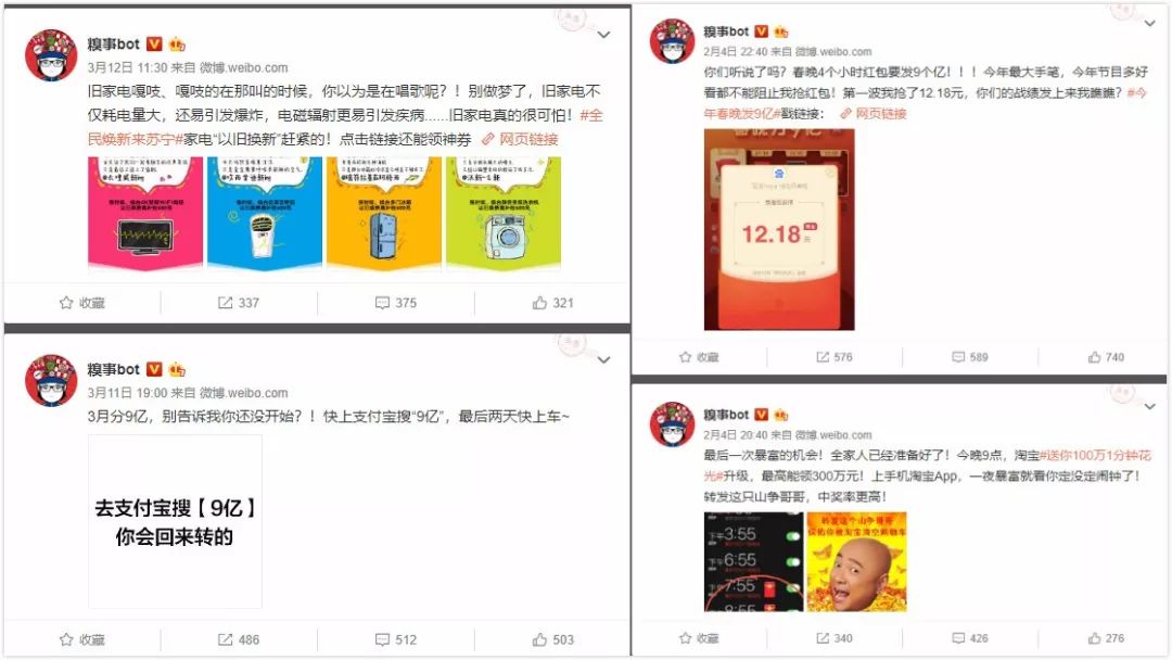 根据我对微博上目前bot账号的观察,主要有下面几种类型: