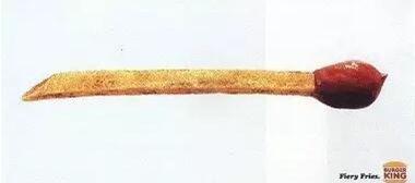 就像汉堡王的辣酱薯条,辣得都快烧起来了,用视觉通感味觉。