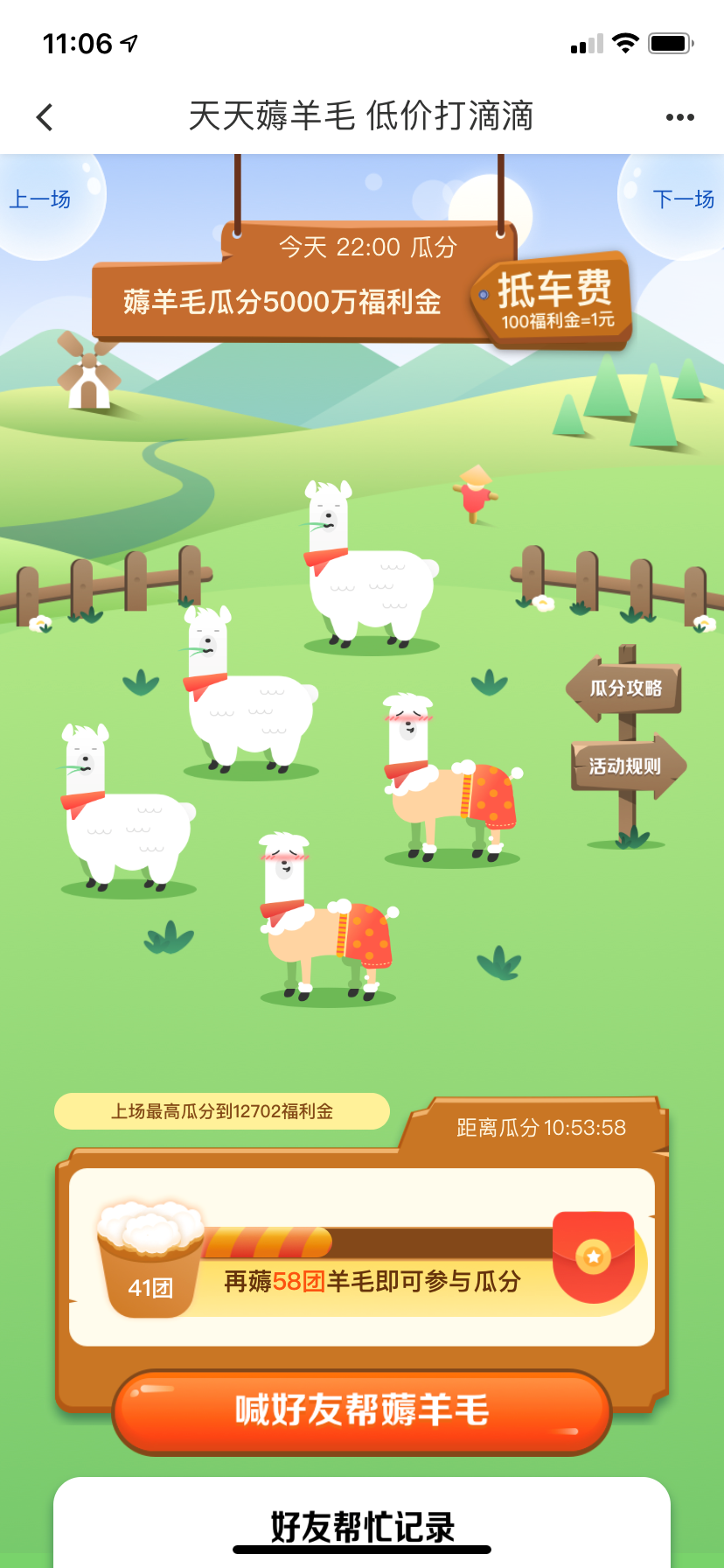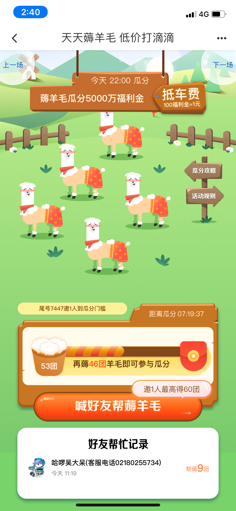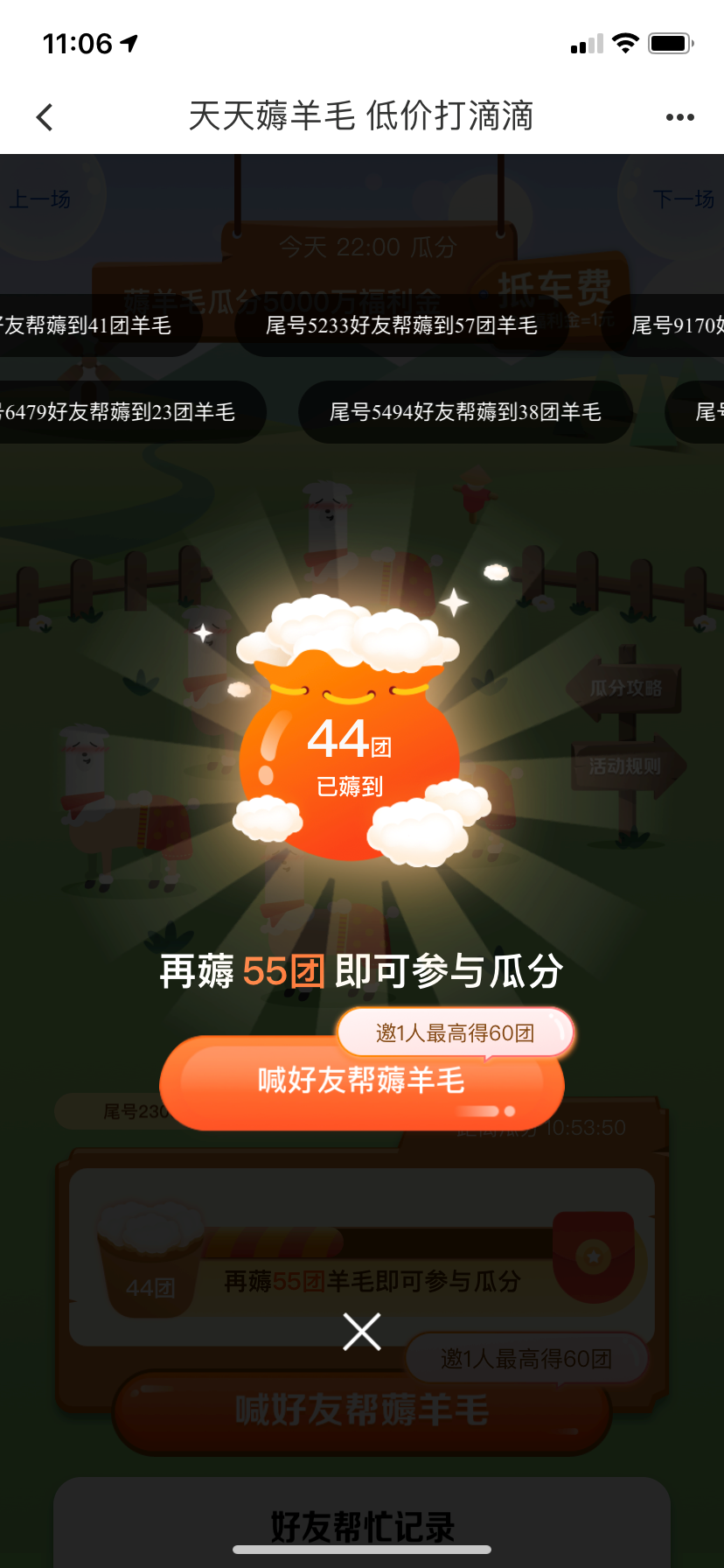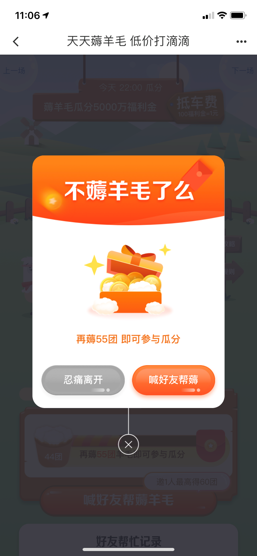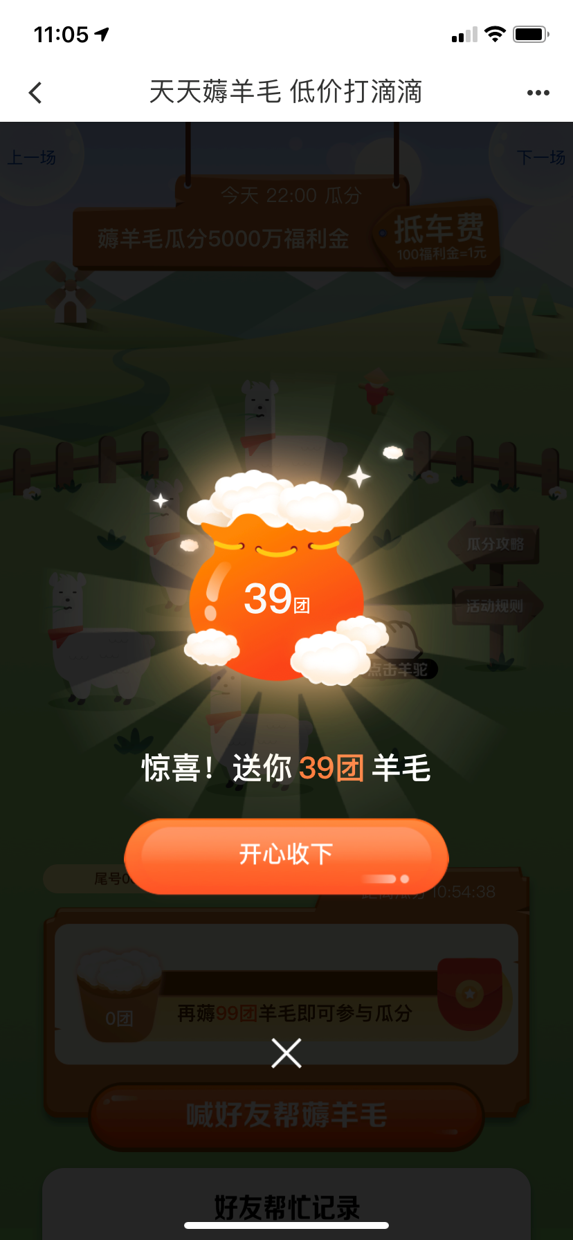 一打开就有【天降羊毛】赠送用户一定份额的羊毛,让用户感觉不参与活动就会损失这部分奖励,利用厌恶损失的心理让用户继续参与活动。