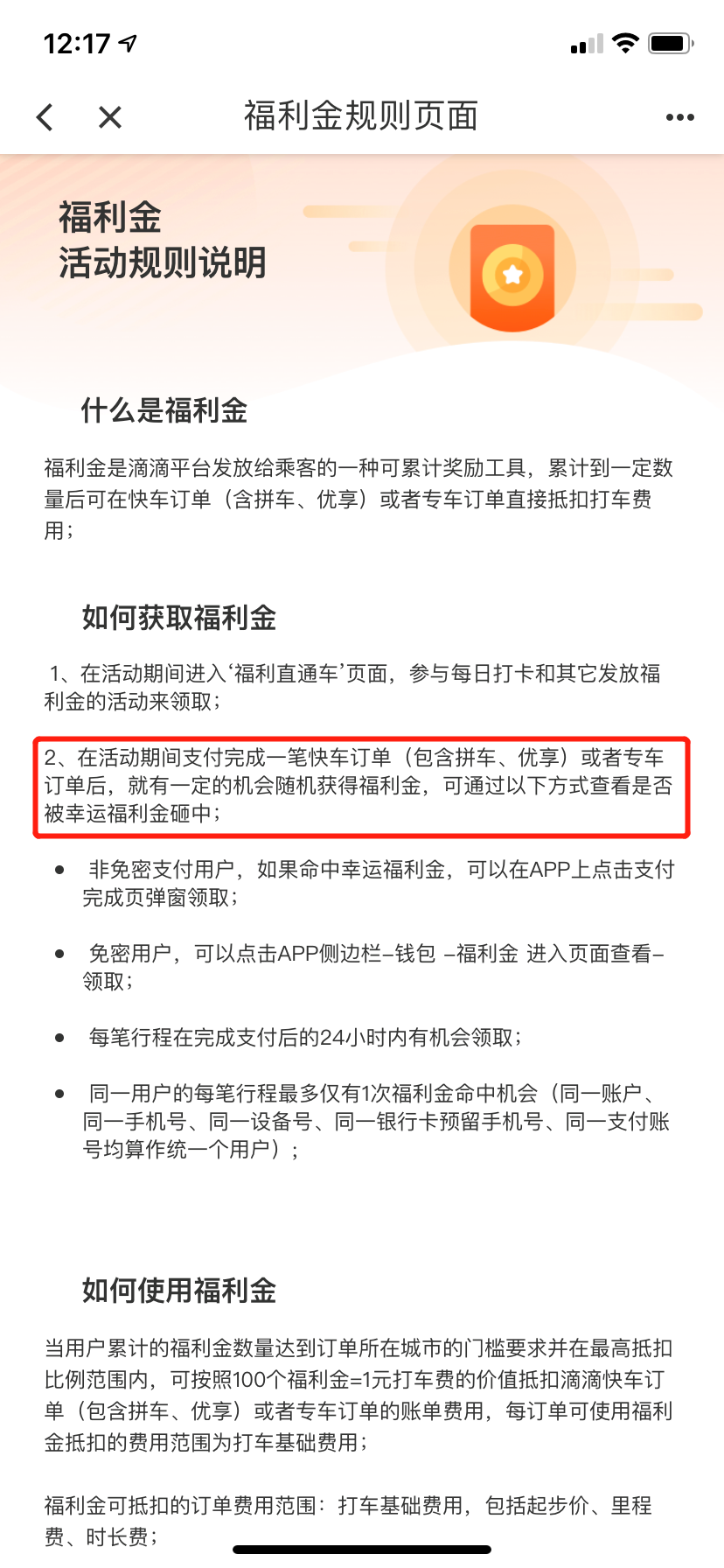 一般的签到活动都需要用户主动去点击获取奖励,但滴滴这次活动打开活动页面即弹出福利,先以福利钩子把用户吸引住,降低用户操作门槛,同时介绍了福利金是干嘛的,让用户感受到实实在在的收益。