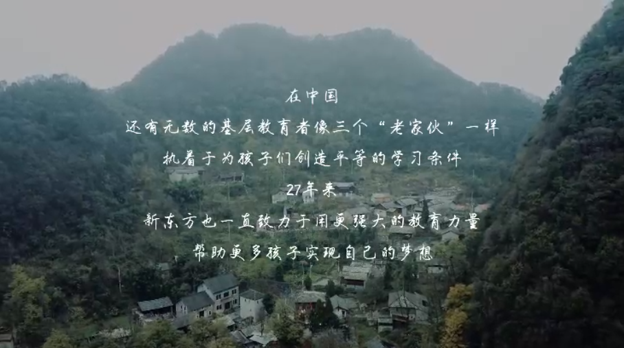 “三个老家伙”回忆起当初选择扎根农村教育的原因,想起一直以来走过的路。他们以为可以凭借自己的努力改变更多孩子的人生,却在双鬓斑白时因为“缺少英语老师”这事儿束手无策。就在此时,短片开头那位离开的小赵老师,给他们送来了新东方在线的网课,让这些娃娃们在线也能学到英语,所有问题也都迎刃而解。
