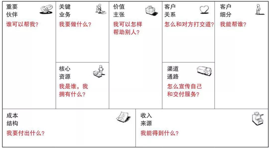 商业模式指的是一个组织在财务上获取收益的方式。亚历山大·奥斯特瓦德等人在研究商业模式时将商业模式分成了九个要素并设计成了一张商业模式画布。我们可以借鉴商业模式画布来设计个人的商业模式,打造个人品牌。个人商业模式画布里的内容有部分会和个人定位相重合,但整体上更为系统。