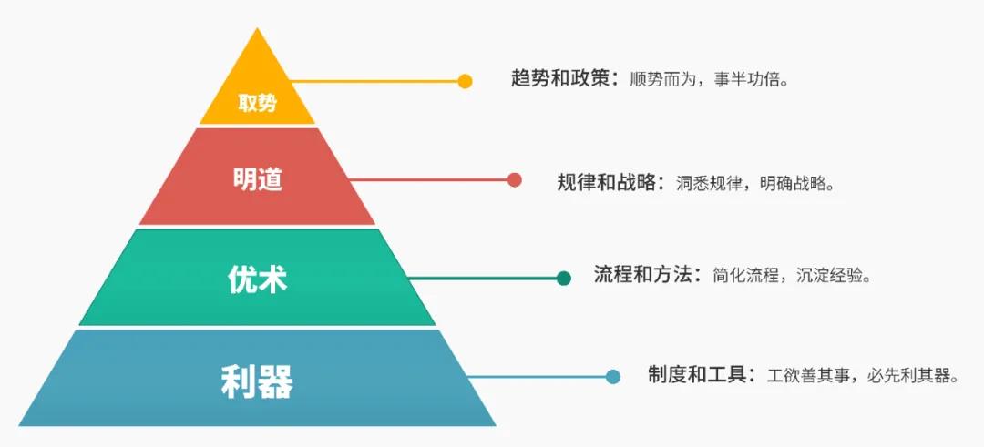 顶层设计是个人品牌打造的"道",掌握了"道"也就明晰了规律和方向,知道了整体的布局,但是要想从零到一的打造个人品牌,还要深谙打造个人品牌之"术",也就是接下来的产品运营、活动运营、内容运营、用户运营、渠道运营和数据运营六个模块。