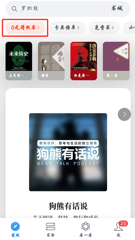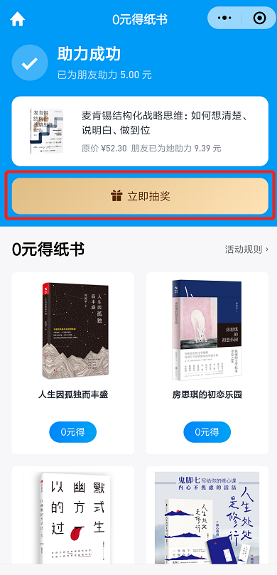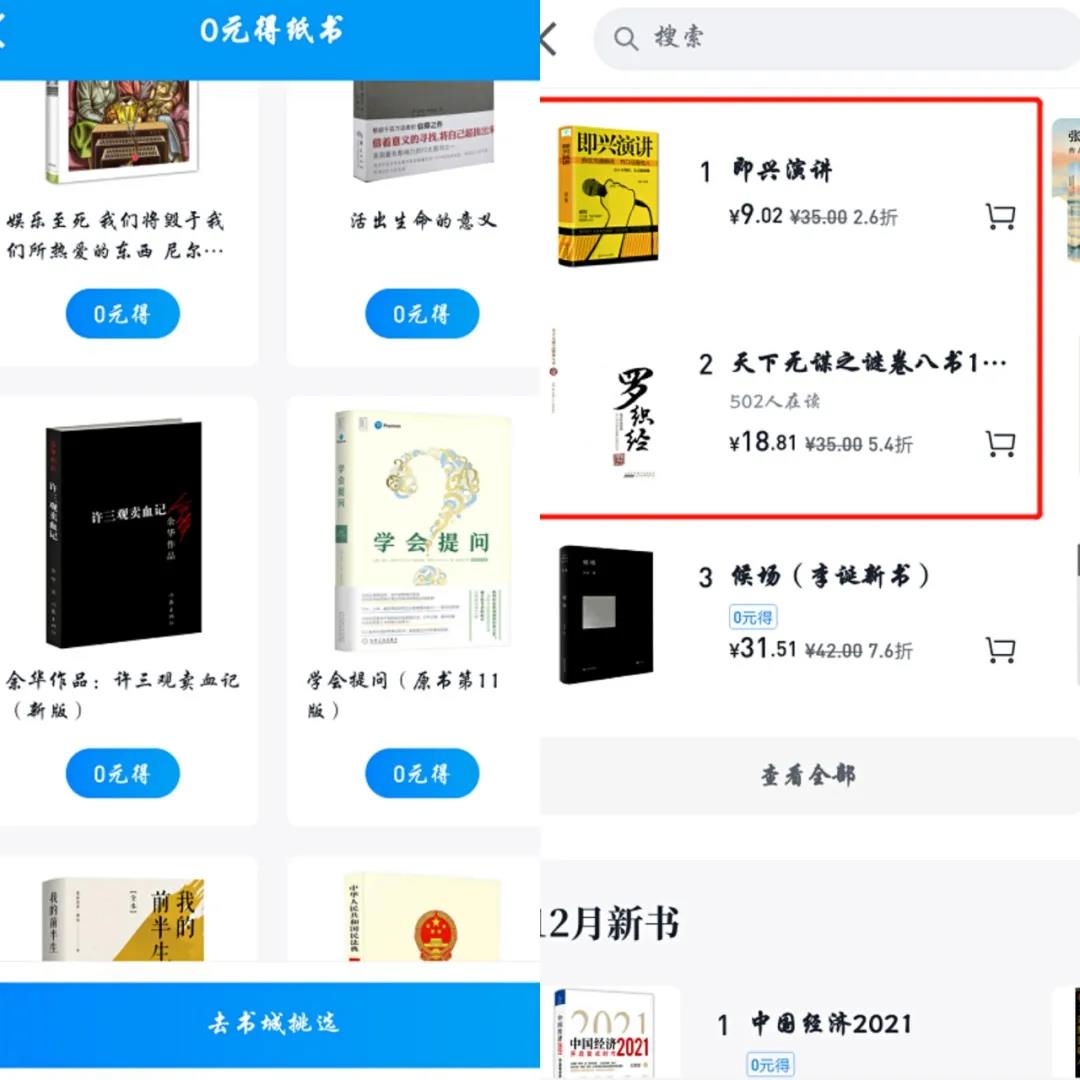 "0元"、"20元至1000元纸书均可参与",用户很难对免费的商品不心动,看到"0元"、看到免费,就会下意识地停留。不仅免费,参与活动的商品价值还很高,价值1000元的纸质书都可以免费获得,这个活动一定要看看。