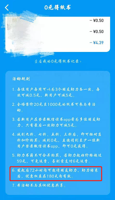 活动的参与时间是72小时,用户参与活动,页面就会显示倒计时,这带给用户紧迫感,随即赶紧找好友助力,尽快完成活动,领取书籍。