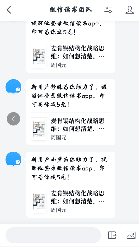 微信读书的活动页面引导性特别强,用户会根据页面提示操作,完全不用担心下一步要干什么,每个环节都很流畅,微信读书的活动流程设计得非常好。