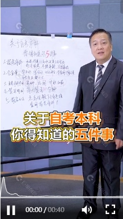 制作过程:在我刚开始做学历的时候,全网都是"你要悄悄拔尖"开头的素材,我一听到就脑壳疼,然后突然在六七月份的时候,学历头部企业某德与抖音上一对 CP 知识达人合作,拍摄了一版以"关于自考本科,你得知道的五件事"为开头的视频内容,两位达人以一问一答的形式,阐述产品的卖点,跑量非常可观。而上边这位大叔的视频就是通过一样的话术脚本,由双人变成一人的形式,模拟老师讲解形式拍摄完成的。