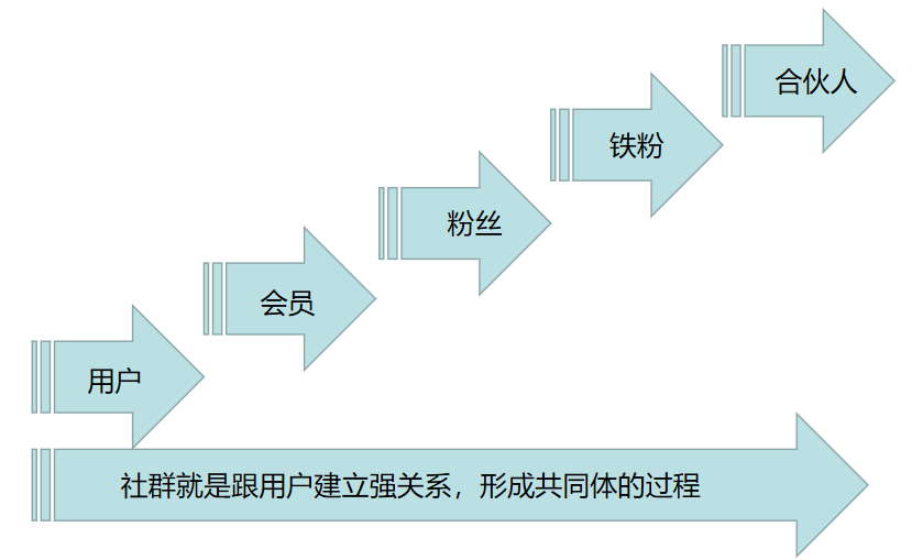 按照上面的推理,改变要素其实作用有限,如产品升级或换个销售方式(线下到线上或线上到线下)。真正重要的是改变要素之间的关系,即企业与客户的关系,假如企业和客户从对立博弈的一次性交易关系转变为一体化的社群关系。社群的本质是共同体,社群的价值就是重建企业与客户关系,就是把潜在用户通过社群内容、社群场景活动转化为用户、粉丝、合伙人。