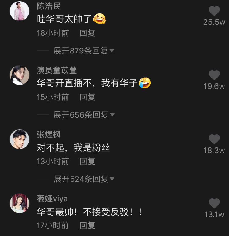 消息一出,呈现了一呼百应的现象。不少网友表示:哇华哥太帅了、天王巨星登上抖音爱豆榜首啦、终于等到你,等等。