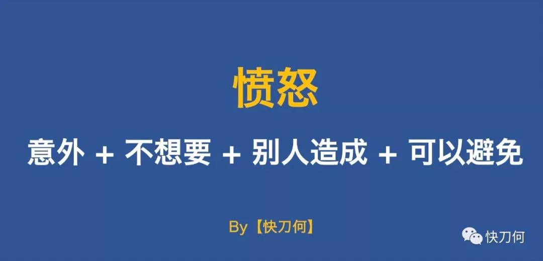 发生了一件意外的事情,事情的结果是你不想要的,造成后果的是别人,他本来可以控制不造成这种后果的。这四项同时满足,愤怒之情就会油然而生。
