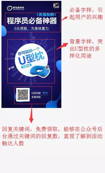 1、海报重点突出"程序员必备神器、U形枕包邮,0元领取"字样,调动用户的积极性