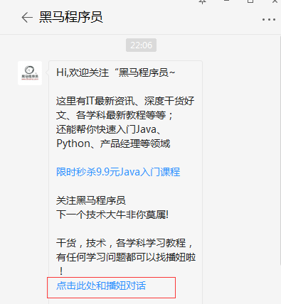 2、关注公众号后,会首先弹出9.9元小课的引流信息,让用户在第一时间能够看到小课的介绍,并且留有工作人员的QQ联系方式。