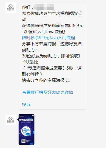 案例目标:公众号裂变涨粉,为小课(9.9元《0基础入门Java课程》)引流