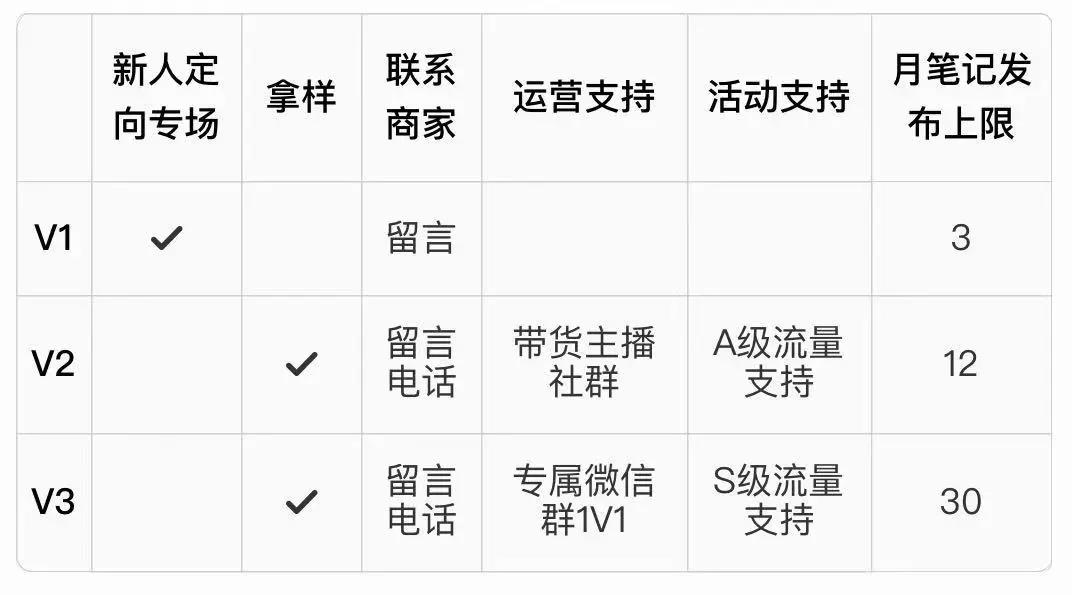 目前后台将达人带货的等级分为,V1 V2 V3 等级不同所享受的待遇不同,目前小红车作为平台主推业务方向,只要两个月累计带货5w以上就能享受平台A级流量扶持及线下活动邀约等等