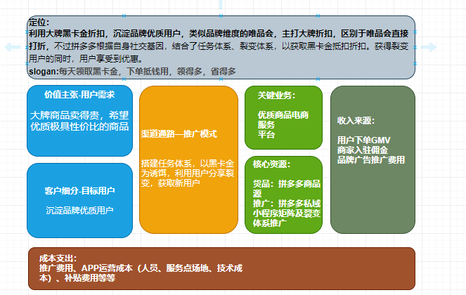 (本块拆解采用商业画布整体,了解拼多多品牌黑卡整体商业模式)