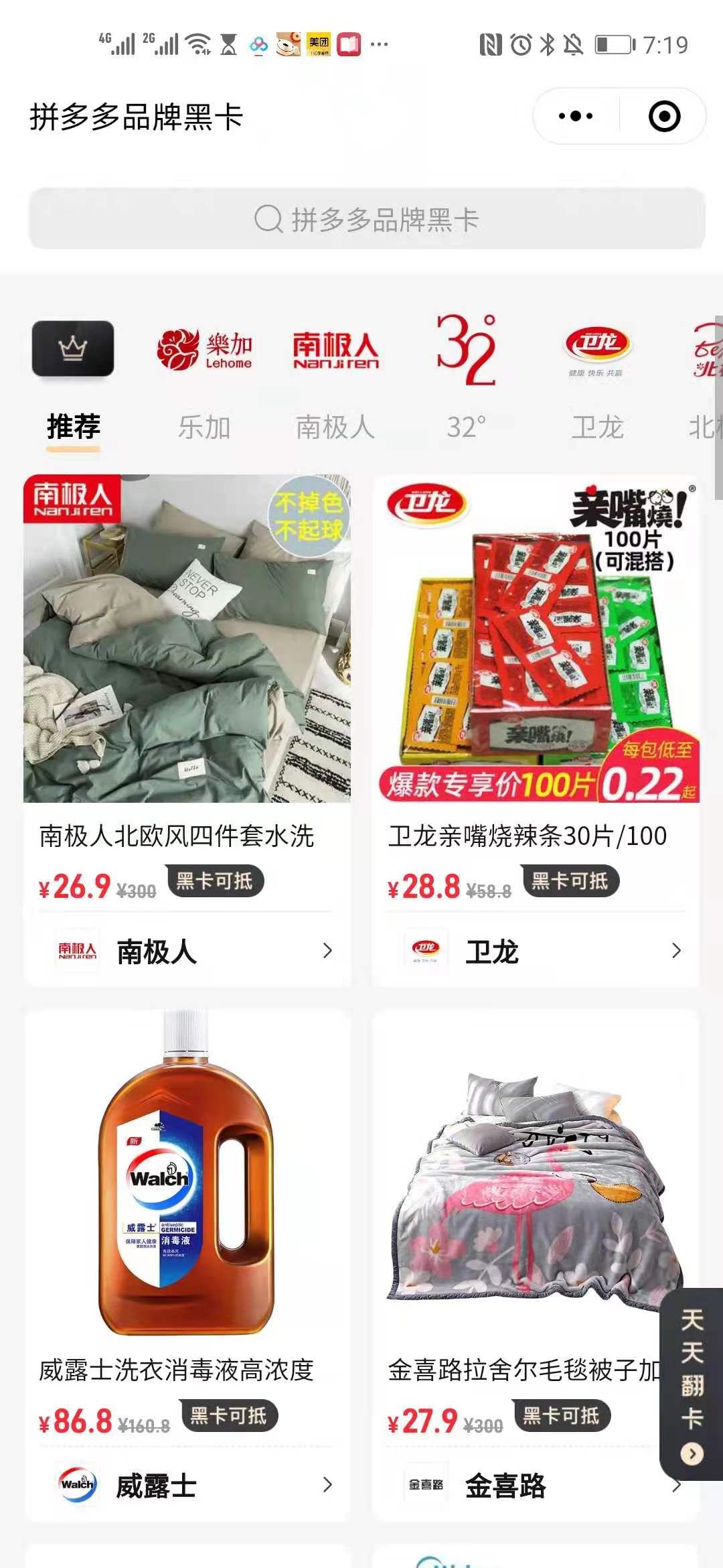 以feed流形式,推荐品牌黑卡可抵扣的商品,增加商品的曝光度,初次推荐以日用、客单价不高的商品为主,多次搜索后会根据个人搜索习惯推荐相关商品