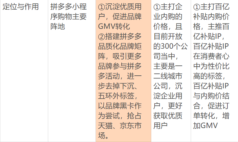 ②搭建拼多多品质化品牌矩阵,吸引更多品牌参与拼多多活动,进一步去掉下沉、五环外标签,以品牌黑卡作为尝试,抢占天猫、京东市场。
