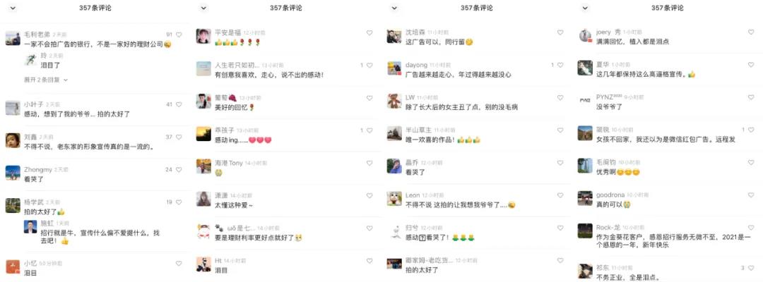 观众们也开始放下对广告的戒备,通过对片中人物情感的借景生情,记录下他们的反馈,作为对本片的回应: