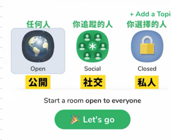 成功加入以后,用户可以透过在通讯录的好友,或根据 Clubhouse 依照你兴趣推荐的清单,选择进入聊天室加入话题;新用户一开始只有两个邀请名额,名额会随用户的开启话题及投入程度而增加。