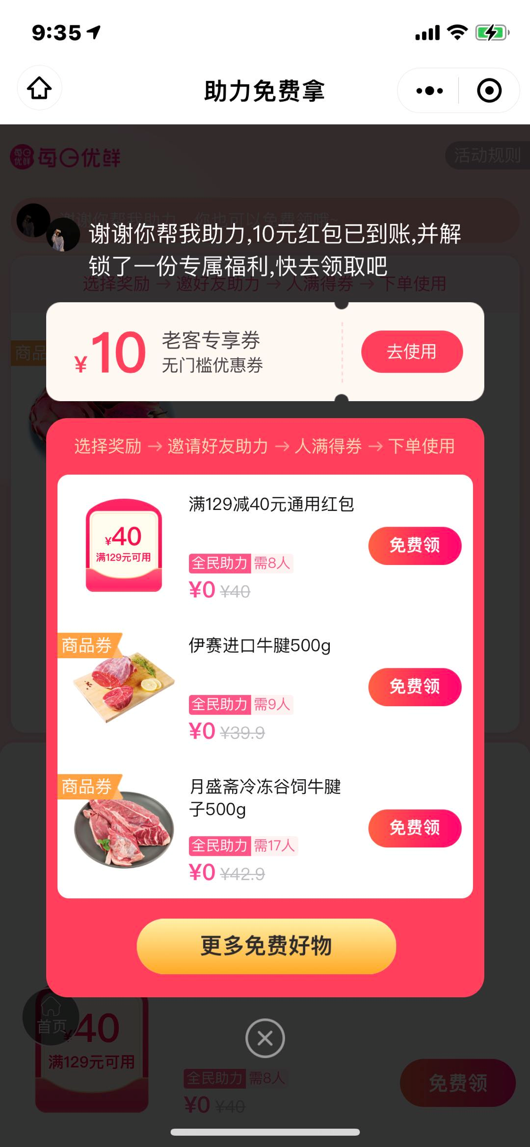 活动运营中期或多或少会涉及到一些调整的部分。四天前老用户受邀进入的是邀请有礼界面,对于助力免费领的活动参与感不是很强,相比上次,今天我们发现对于老客这里也设置了无门槛优惠券,以及老客户0元领的活动窗口。