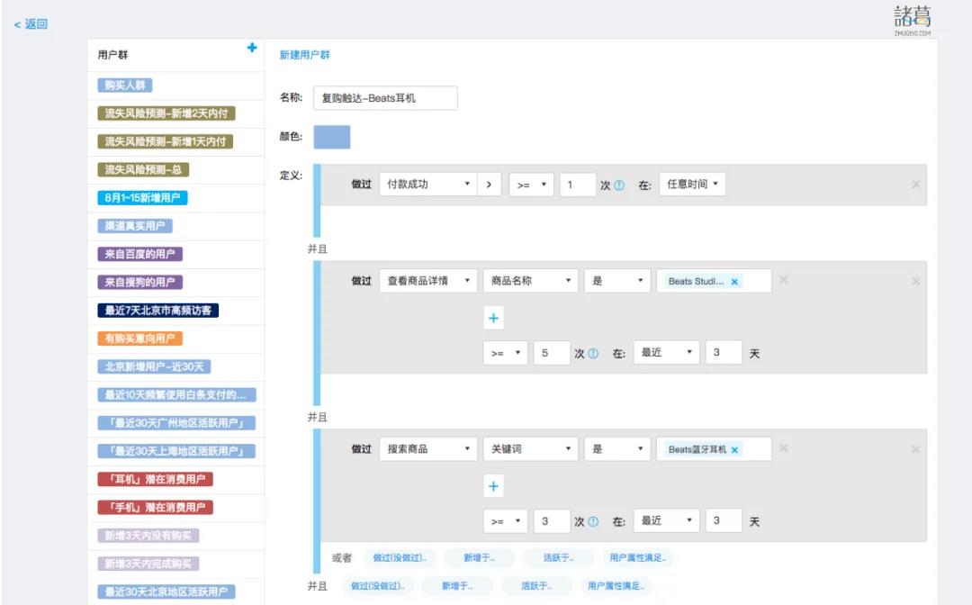 简单来说,就是针对以往已经产生过购买行为的用户按照累计消费金额,购买频率以及最近一次购买时间针对用户做用户分层,采取不同的策略刺激用户最终消费金额的提升。同样的思维,也可以将用户行为进行细分,对于不同的用户采取不同的发券和老客专享价,让总体用户的价值最大化。