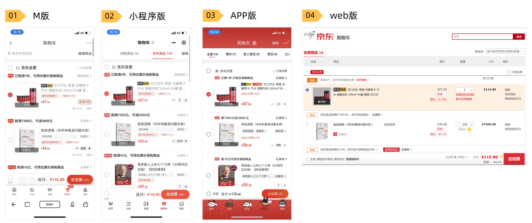 1、都有哪些版本的购物车?M版,APP版,小程序版和PC版